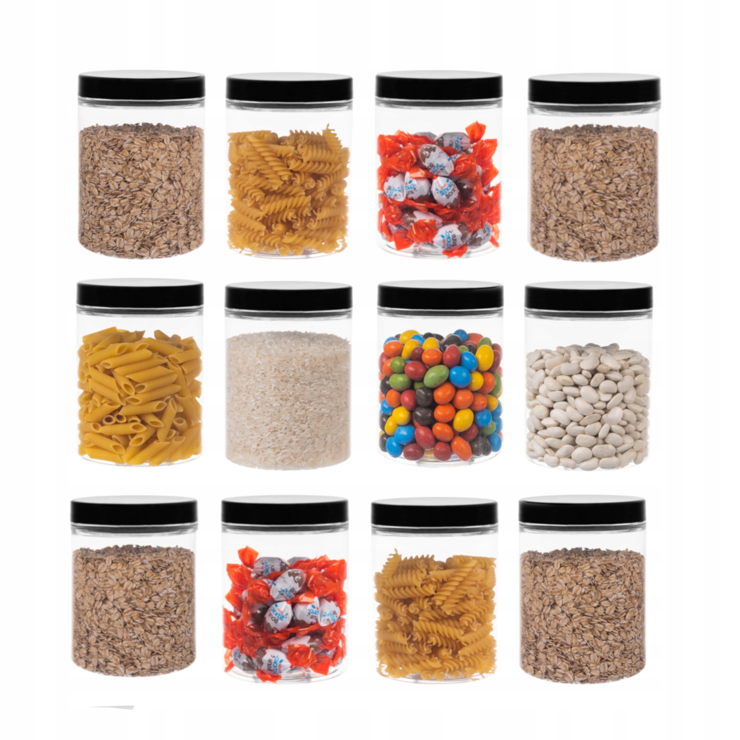 Słoik plastikowy z nakrętka czarną 1000ml 1L 12 szt na makaron